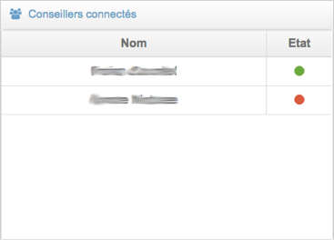 Cette fonctionnalité permet de savoir rapidement qui est connecté et quel est son état, en face du nom de la personne se trouve une pastille de couleur :