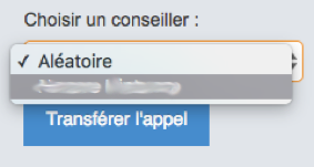Réception d’appel :Lorsqu’un appel est reçu, il est automatiquement attribué à un conseiller disponible. Ce dernier reçoit une notification sonore et voit cet écran apparaître. Il permet de connaître le type d’appel, de décrocher ou de transférer l’appel à un autre conseiller.